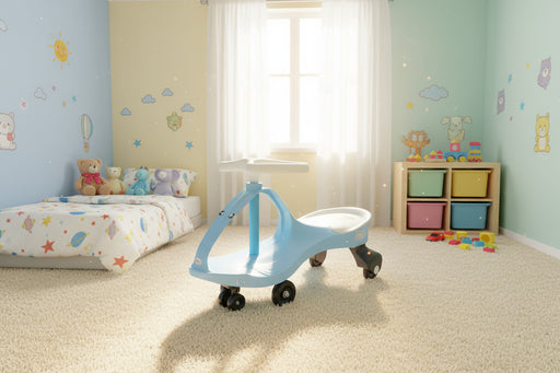 Auto Swing Car With Lights & Music Material: Fiber Colour may vary Lights & Music Battery Operated Footrest Recommended age: 2-4 Years