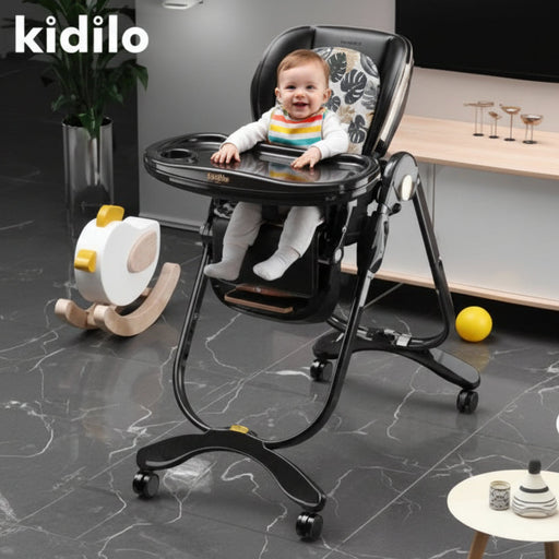 Adjustable Height Kidilo Baby High Chair High Quality Material Adjustable Height Soft Cushion Removeable Two Layer Tray for Easy Claening Foldabl...