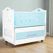 - Baby Cot with a White Finish and Wooden Legs, Equipped with a Drawer for storage.