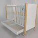 - Baby Cot with a White Finish and Wooden Legs, Equipped with a Drawer for storage.