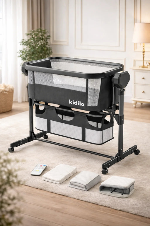 Kidilo Electric Baby Cradles High Quality Material Color May Vary Portable & Foldable Removeable Mosquito Net Adjustable Height Spacious Stora...