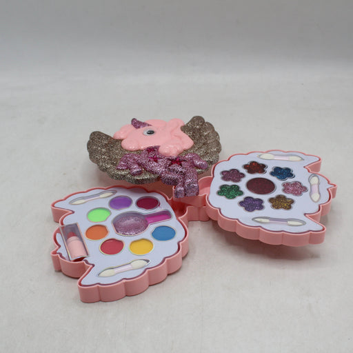 Unicorn Shape Glitter Makeup Kit Key Features: High quality Plastic Material 2 Rounds 7 x Eye Shadow Mate Colors 6 x Brushes 8 x Eye Shadow Glitte...