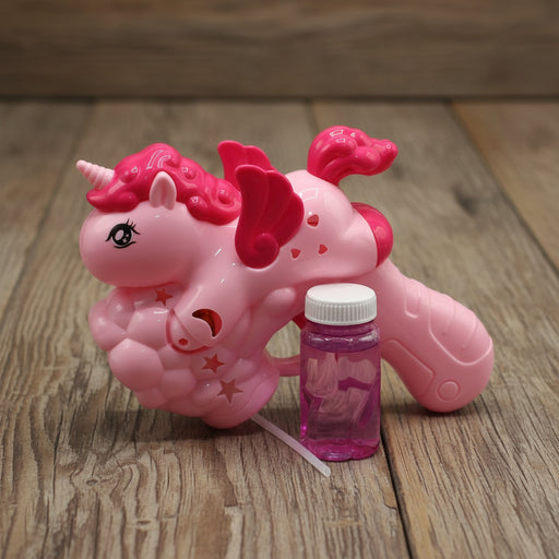 Unicorn Shape Bubble Gun with Lights High Quality Plastic Material Cool Lights Simple Design Leak Proof Design Easy to Use Battery-Operated Cute U...
