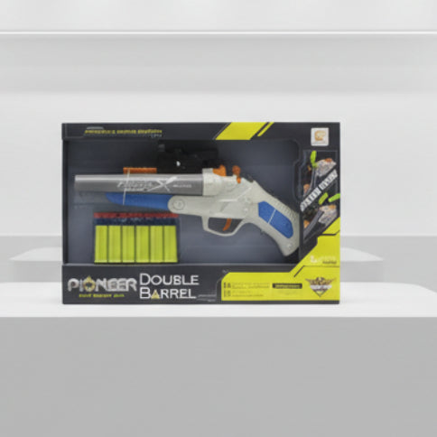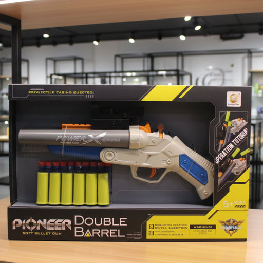 Pioneer Double Barrel Soft Bullet Gun High Quality Plastic Material 1 x Gun 1 x Aiming Device 10 x Soft Bullets 6 x Bullet Shell Simulation Functi...