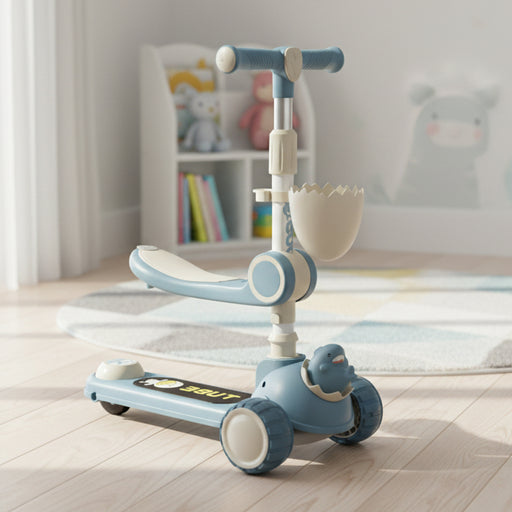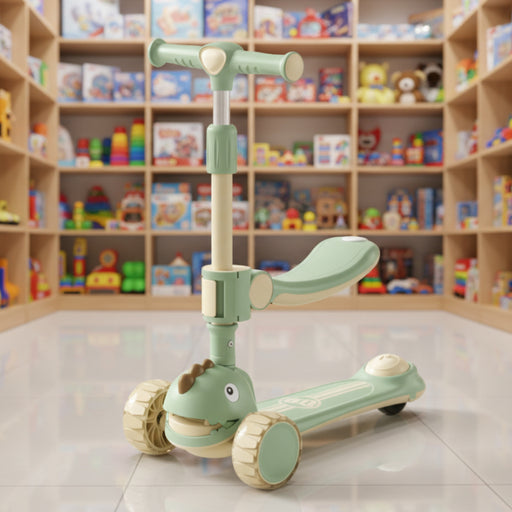 Dinosaur Theme 2 in 1 Foldable Scootie High Quality Material 3 x Wheels Portable & Durable Adjustable Height Sturdy Design Color May Vary Rec...