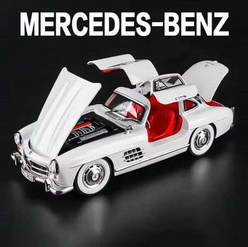 Diecast White Mercedes Benz 300SL Car High Quality Metal Material Light & Sound Rubber Tires Openable Doors Scale 1:24 Pull Back Openable Bo...
