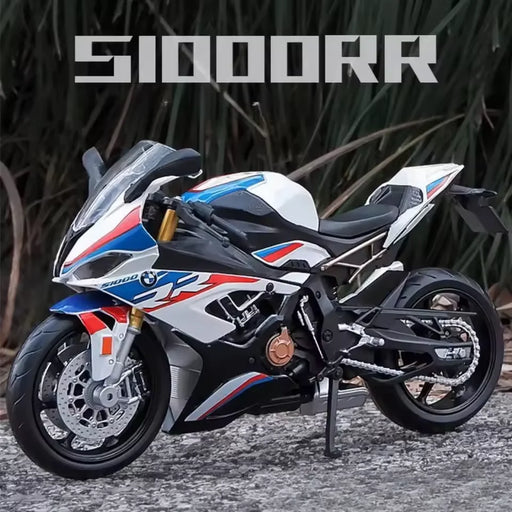 Diecast BMW S1000RR Model Bike High Quality Metal Material 1:9 Scale Wheels Built in Suspension Press Down Light & Sond High Level Simulated ...