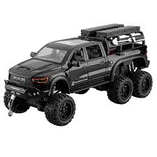 Diecast Mammoth 6x6 Ram Pickup Truck High Quality Metal Material Light & Sound Rubber Wheels 6 x Tires 1.24 Scale Pull Back Function Door C...
