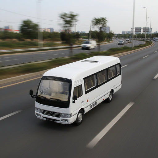 Diecast Toyota Coaster with Light & Sound High Quality Metal Material Light & Sound 4 x Rubber Tires Side Doors Open Openable Bonnet O...