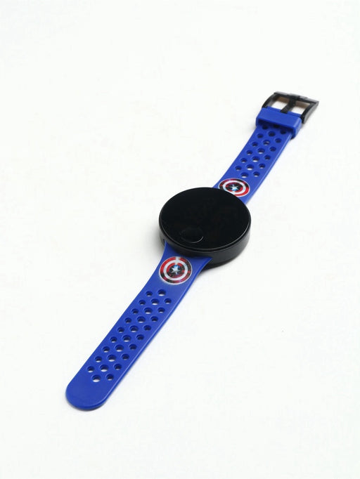 Captain America Theme Smart Watch High Quality Material Silicone Strap Smart Watch Press and hold the button for a few seconds till the time sta...