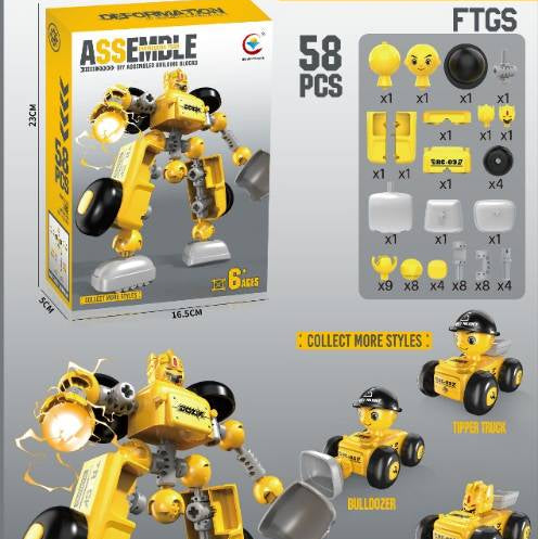 Consruction Vehicle Transforming Robot 58 Pieces High Quality Plastic Material Style May Vary 1 x 58 Pieces Easy to assemble Recommended Age 6 +...