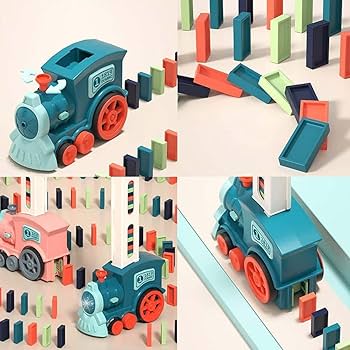 Electric Domino Train with Light & Sound High Quality Plastic Material Light & Sound Battery Operated Cute Look Hand Eye Coordination Aut...