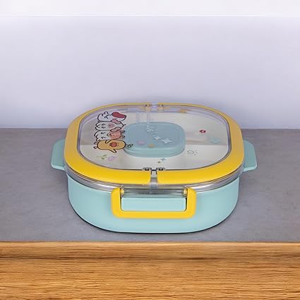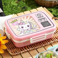 Fancy World Unicorn Lunch Box High Quality Stainless Steel & Plastic Material Color & Style May Vary Cute Style 3 Compartments 4 Sided Se...