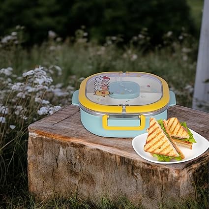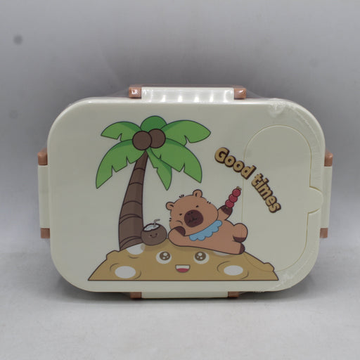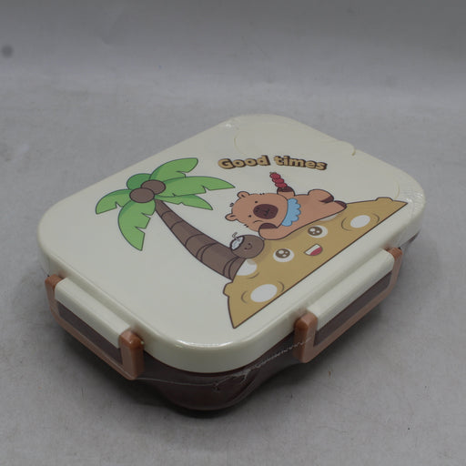 Bear Theme Good Time Lunch Box High Quality Stainless Steel & Plastic Material Style May Vary Cute Design Plastic cutlery inside portable stor...