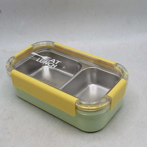 2 Compartments Lunch Box High Quality Stainless Steel & Plastic Material Grid Design 2 Compartments 4 Sided Seal Lock Function 500ml Sealed ...