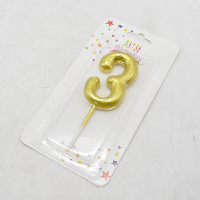Metallic Number 3 Candle