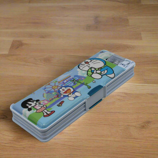 Doremon Theme Geometry Box with Lamp Light Key Features: High Quality Plastic Material Double Sided Pencil Box Included Lamp Light Push the Bu...