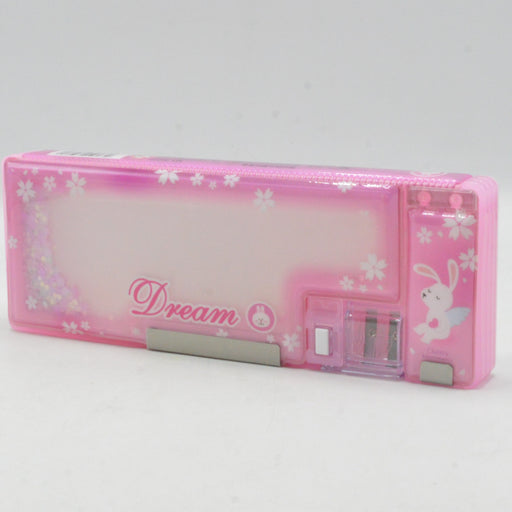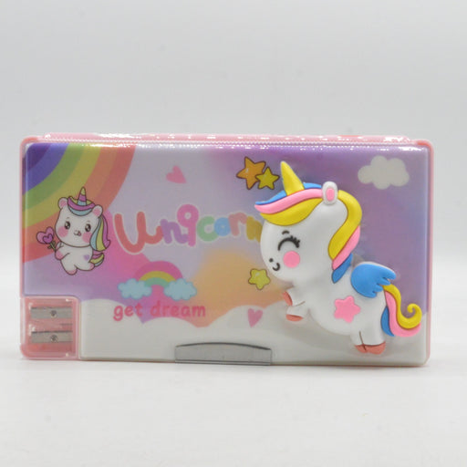 Unicorn Theme Multifunctional Pencil Box High Quality Plastic Material On / Off Push the Button Sharpener / Eraser Double Sided Color May Vary ...