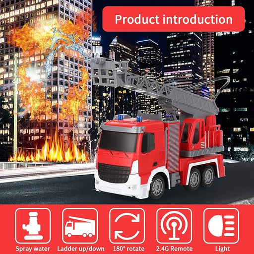 Rechargeable Ladder Fire Truck with Lights High Quality Plastic Material Gorgeous Lights Spray Function 1: 24 Scale The ladder can stretchup and d...