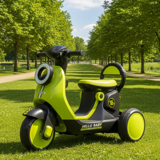 Fiber Body Ride on Baby Bike High Quality Easy to Ride Rechargeable Batteries Music & Lights 3 x Wheels Storage Box Color May Vary Recommend...