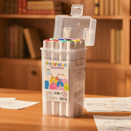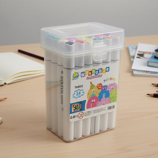 Washable Acrylic Twin Marker Pack of 24 High Qulaity Plastic Material 24 x Different Color Twin Marker Maker Easy to Hold Lock Function Box Size ...