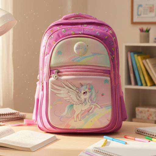 Magical Unicorn Theme School Back Pack High Quality Material 3 x Zip 2 x Side Mini Pockets Hand Holded Strap Adjustable Strap Shoulder Starp Ba...