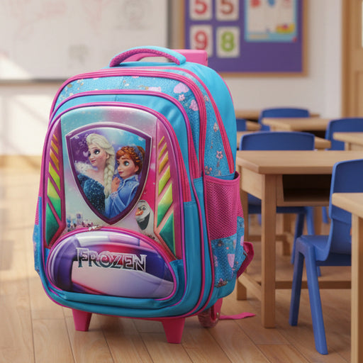 Frozen Princess School Trolley Bag High Quality Material 4 x Zip 2 x Side Mini Pocket Color May Vary Adjustable Height 2 x Wheels Trolley Bag Si...